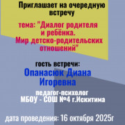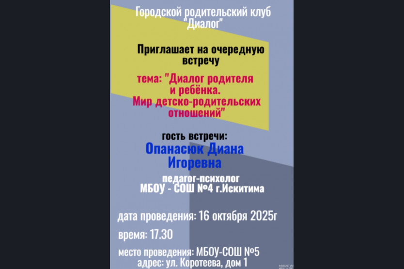 16 октября 2025 года на базе МБОУ СОШ № 5 состоялось заседание городского родительского клуба «Диалог». В начале встречи, руководитель методического объединения города Искитим, Валентина Викторовна Сучкова, рассказала историю создания клуба, его активности. Валентина Викторовна обратила внимание на то, что в рамках клуба проводятся встречи не только с педагогами, но и врачами, представителями других организаций образовательной или социальной направленности. В рамках клуба, педагогами проводится выставка игровых пособий, и консультирование.